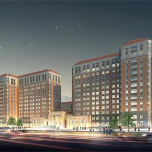 規(guī)劃總用地面積45469m2,總建筑面積為164300m2。其中地上建筑面積77300m2,地下建筑面積約為87000m2。