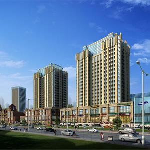 形體組合利用環(huán)境關(guān)系生成的主樓形體簡潔規(guī)整,沿交通干道形成了龐大的體量。同時(shí)三層裙房與二十七層主樓高低錯(cuò)落,形成極為豐富的輪廓線,商業(yè)步行街采用歐洲風(fēng)情街的形式,這一系列的處理能使該建筑成為該地段上的標(biāo)志性建筑,展現(xiàn)出國際化大都市的新形象。