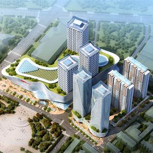 本項目位于內(nèi)蒙古呼和浩特市回民區(qū),該區(qū)域?qū)儆诤艉秃铺厥谐鞘泻诵纳虡I(yè)區(qū),振華購物廣場地理位置極其重要且北側(cè)為新華廣場為本項目的城市綜合體提供了良好視野及環(huán)境。規(guī)劃將其定位為城市購物中心、休閑娛樂、五星酒店、高級寫字樓及公寓等多功能為一體的特大型現(xiàn)代化的城市綜合體。住宅區(qū)主要為滿足該區(qū)域原有住房回遷規(guī)劃為五棟一百米的高層住宅樓,底設(shè)三層沿街商業(yè)網(wǎng)點供銷售。外墻裝飾主要考慮現(xiàn)代風(fēng)格。