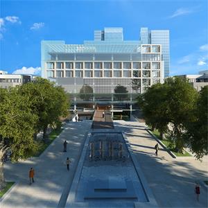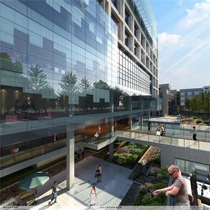 整個(gè)項(xiàng)目采用現(xiàn)代的設(shè)計(jì)手法。為了避免通常的科技園區(qū)由于大量且均勻排布的單體建筑形成園區(qū)單調(diào)、刻板的形象,在不影響使用的前提下,在單體的形象設(shè)計(jì)上沒有將多層戊類廠房設(shè)計(jì)成一個(gè)個(gè)簡(jiǎn)單的盒子,而是通過一系列形體上的變化,使之具有較為個(gè)性的視覺特征,并在規(guī)劃布局上采用交替錯(cuò)落的排布手法,并結(jié)合下沉廣場(chǎng)的設(shè)置,使整個(gè)園區(qū)富有趣味性。豎向條形窗與幕墻的交替排布,白色和深灰色的體塊相互咬合,并在體塊交接的位置形成局部的退臺(tái)以及挑出,使得單體建筑的體塊具有整體且不呆板的視覺效果。