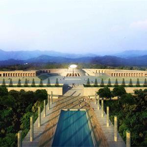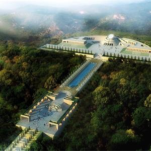 本項(xiàng)目設(shè)計(jì)吸收了國(guó)內(nèi)外陵園建筑和祭祀建筑的可借鑒的因素,把設(shè)計(jì)的重點(diǎn)放在軸線,序列和節(jié)奏的變化上。主要的軸線 安排在現(xiàn)有的通向紀(jì)念碑的五百米長(zhǎng)的道路的位置上,依次展開入口廣場(chǎng)—追思大道—楊子榮廣場(chǎng)—思源之路—紀(jì)念廣場(chǎng) —紀(jì)念館4觀景臺(tái)4紀(jì)念林4烈士墓等內(nèi)容。