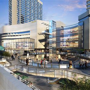 作為煙臺市芝罘區(qū)核心商業(yè)區(qū)集商業(yè)、商務、居住為一體的綜合體項目,滿足人們衣食住行 一體化的”低碳、樂活”的居住新需求。項目規(guī)劃結構以新瑪特及麥凱樂商業(yè)為中心軸線,結合商鋪,形成東西走向的商業(yè)街, 使大海陽路、西大街、新建巷及青年路的人流互動,增加商業(yè)的可達性和趣味性。建筑外觀采用現代主義建筑風格。塔樓、住宅及商業(yè)區(qū)既相互呼應,又各有特色。 新瑪特、麥凱樂商場主要以石材、金屬板及玻璃幕墻為主要材質,通過材質間強烈的對比,勾 勒出西大街與大海陽路獨特的商業(yè)氛圍;塔樓部分選用了與商場顏色接近的真石漆,保持了建筑整體風格的統(tǒng)一與延續(xù)。