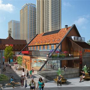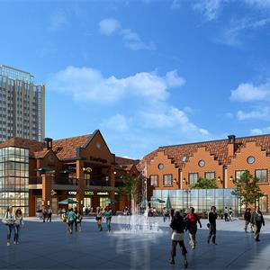 C地塊以商業(yè)為主,大型商場,電影院等娛樂場所設(shè)置于此。商業(yè)有沿街式,獨棟式,內(nèi)街式,連廊串聯(lián)各種形式的商業(yè)體,沿寨南路設(shè)住宅樓。