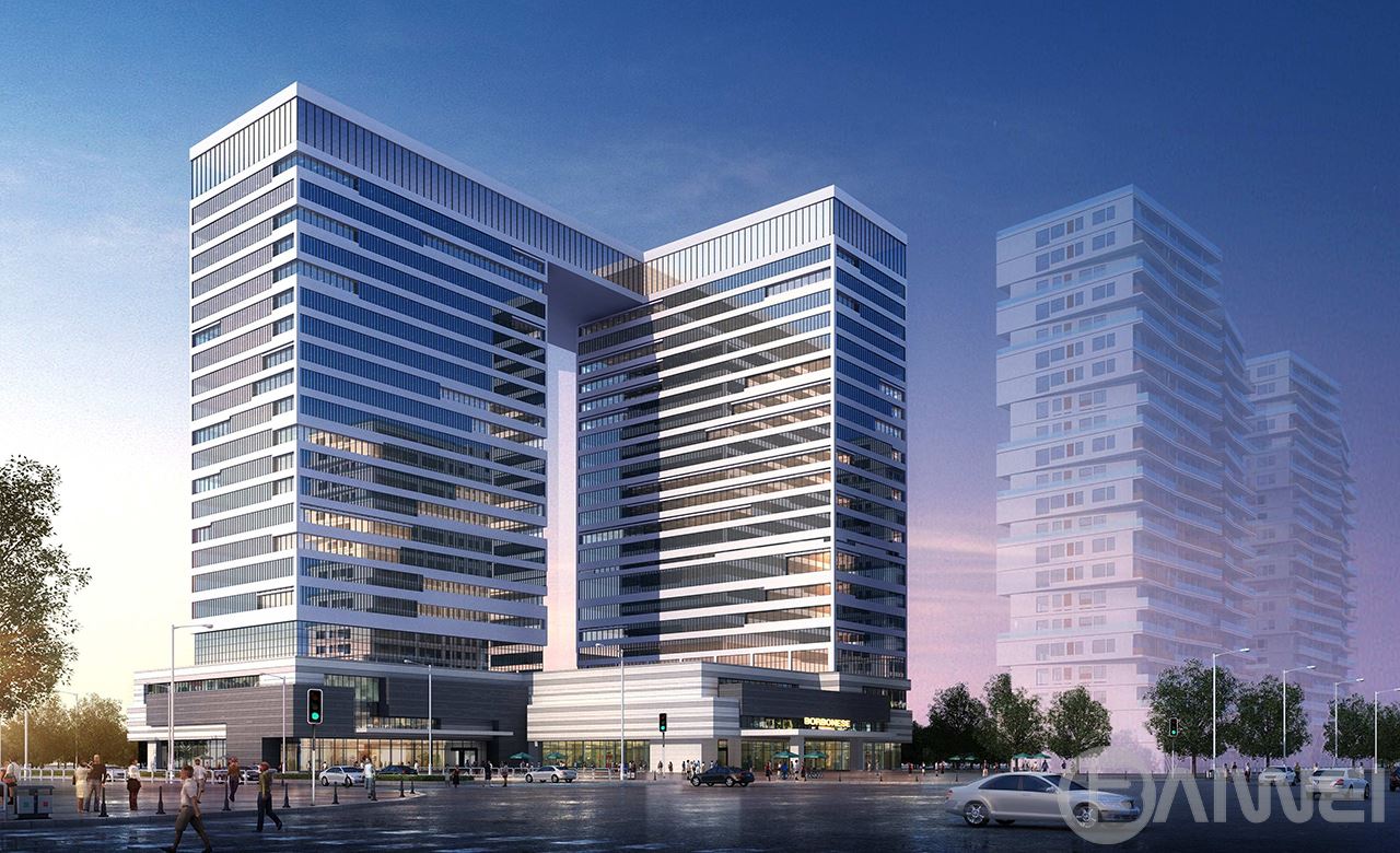CBD中央商務(wù)區(qū)在立面、造型的建筑設(shè)計(jì)上,緊扣簡(jiǎn)潔高效的主題,以橫向線條為主,通過(guò)豐富又不失規(guī)律的變化讓建筑充滿了韻律感。建筑主體形體布局采用了L型雙塔布局也是做了充分的研討,這樣同時(shí)照顧到了206國(guó)道方向以及長(zhǎng)江路主干路的沿街面效果。