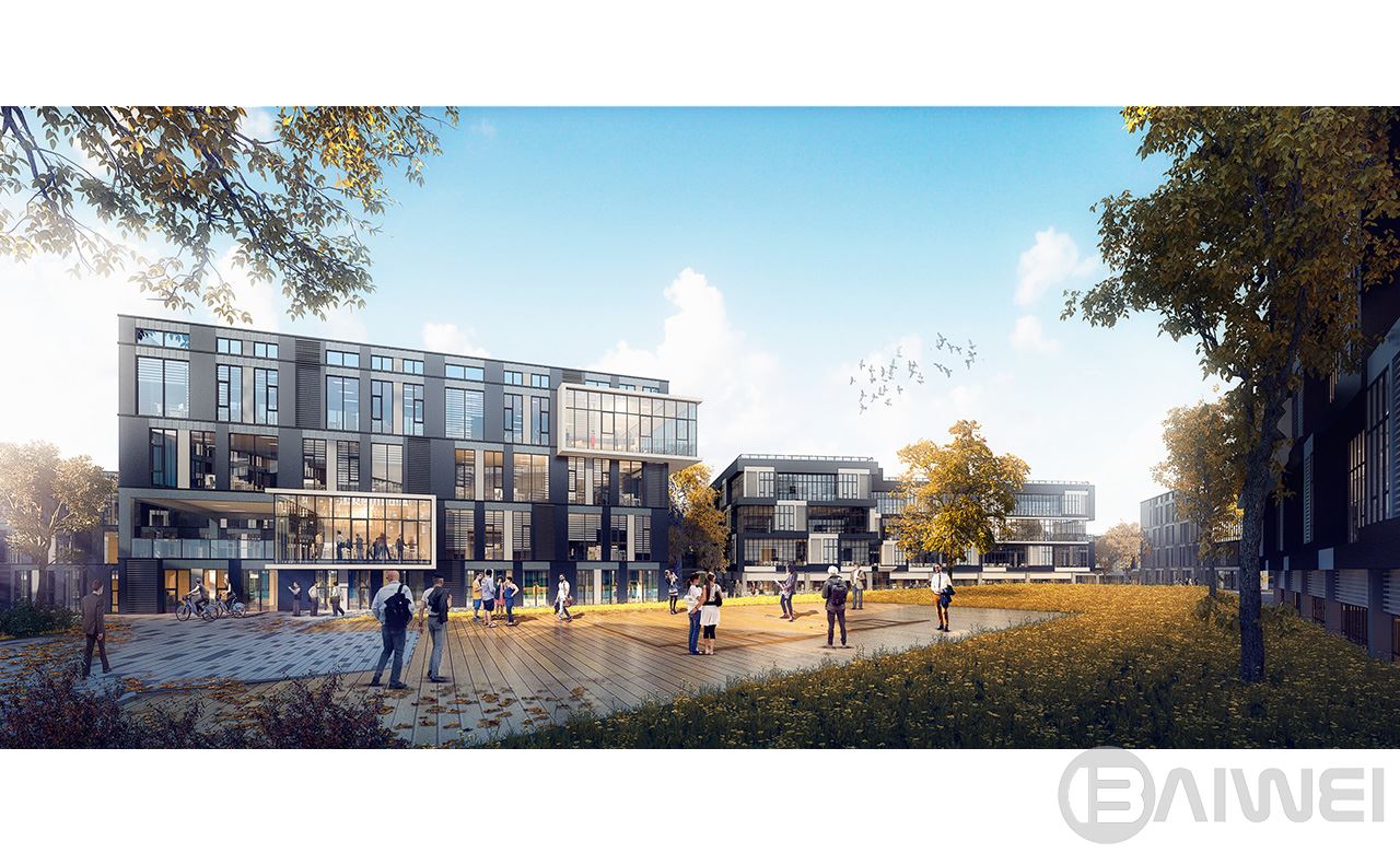 項(xiàng)目位于河北省滄州市,園區(qū)定位為“科技園+”的概念,打造依托物聯(lián)網(wǎng)、集聚創(chuàng)業(yè)團(tuán)隊(duì)的精英社區(qū)和助推中小企業(yè)、整合發(fā)展于一體的開(kāi)放服務(wù)平臺(tái),設(shè)計(jì)上力求打造一個(gè)配套完善,高度生活化的生態(tài)、節(jié)能、開(kāi)放的工作社區(qū)。項(xiàng)目以2棟10層高層辦公和13棟3~4層開(kāi)場(chǎng)合院多層辦公樓組成,理性多變的單體建筑組合,形成不同尺度的街道、廣場(chǎng)和庭院空間,構(gòu)建“兩軸一路”的規(guī)劃布局。