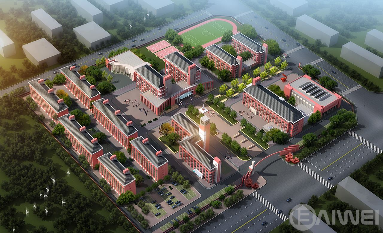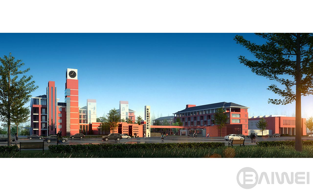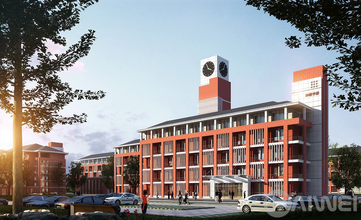 本項(xiàng)目位于煙臺(tái)市高新區(qū),包括靜區(qū)教學(xué)辦公樓,綜合教學(xué)樓,學(xué)生宿舍兩棟,餐廳,6棟專業(yè)教研樓,實(shí)驗(yàn)劇場(chǎng)??傮w布局上,充分考慮校區(qū)的合理分區(qū)建設(shè)。建筑分布在南北方向校內(nèi)主干道兩側(cè),合理組織各功能分區(qū),教學(xué)生活功能分區(qū)明確。整體布局合理,涼席方便,動(dòng)靜分區(qū)額明確,互不干擾,為學(xué)生創(chuàng)造一個(gè)安靜舒適而又方便的學(xué)習(xí)生活空間。主入口設(shè)在校區(qū)的東側(cè)規(guī)劃路23號(hào)方向,一起綜合教學(xué)樓作為學(xué)校的中心建筑,入口與中心建筑之間形成廣場(chǎng)和中心綠化帶。建筑整體采用現(xiàn)代式,整個(gè)建筑群高低錯(cuò)落,層次分明,以辦公樓鐘樓作為建筑群制高點(diǎn),統(tǒng)領(lǐng)整個(gè)建筑群。建筑以哈弗紅色調(diào)為主,搭配適度白色。建筑構(gòu)件細(xì)節(jié)豐富,在細(xì)節(jié)部分充分體現(xiàn)藝術(shù)學(xué)校的特點(diǎn),給在校師生創(chuàng)造一個(gè)術(shù)士積極的教學(xué)環(huán)境。