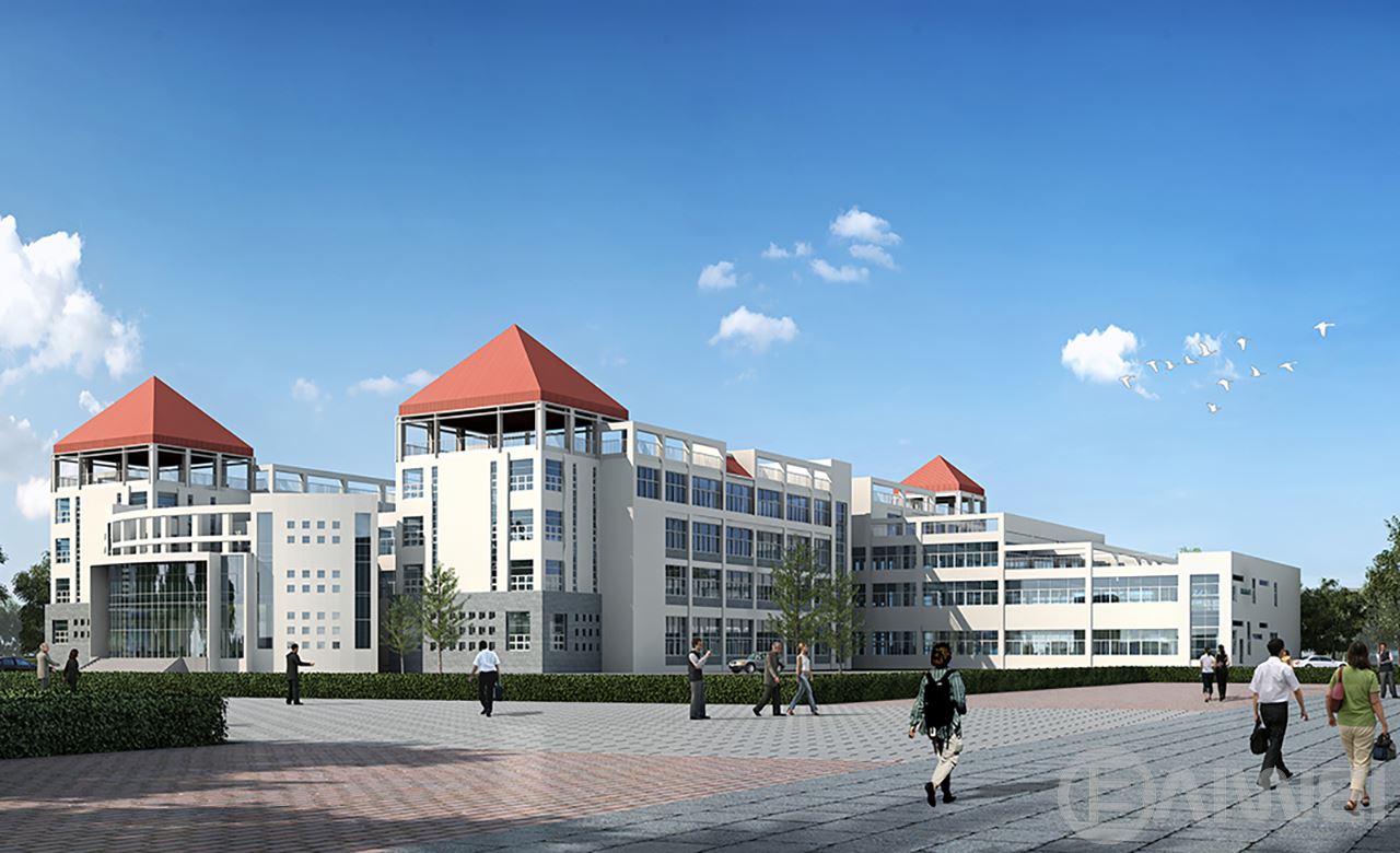本方案從傳統(tǒng)中尋找靈感,將優(yōu)秀傳統(tǒng)文化中的“含蓄豁達,寧靜致遠,學無止境”的精神意境以青磚、紅瓦、白檐、清澈的玻璃作為寄托,創(chuàng)造出一片意境深遠,淡雅清澈的校園文化;學校整體的豎向線條代表著欣欣向榮的求學風尚。建筑順山應勢,形成錯落有致的屋頂輪廓;地勢高差變換的地方形成公共空間,以塔的形式將錯落的建筑單體聯(lián)系在一起,自然而然成為統(tǒng)一中的變化,豐富了立面造型空間感覺,起到畫龍點睛的作用。