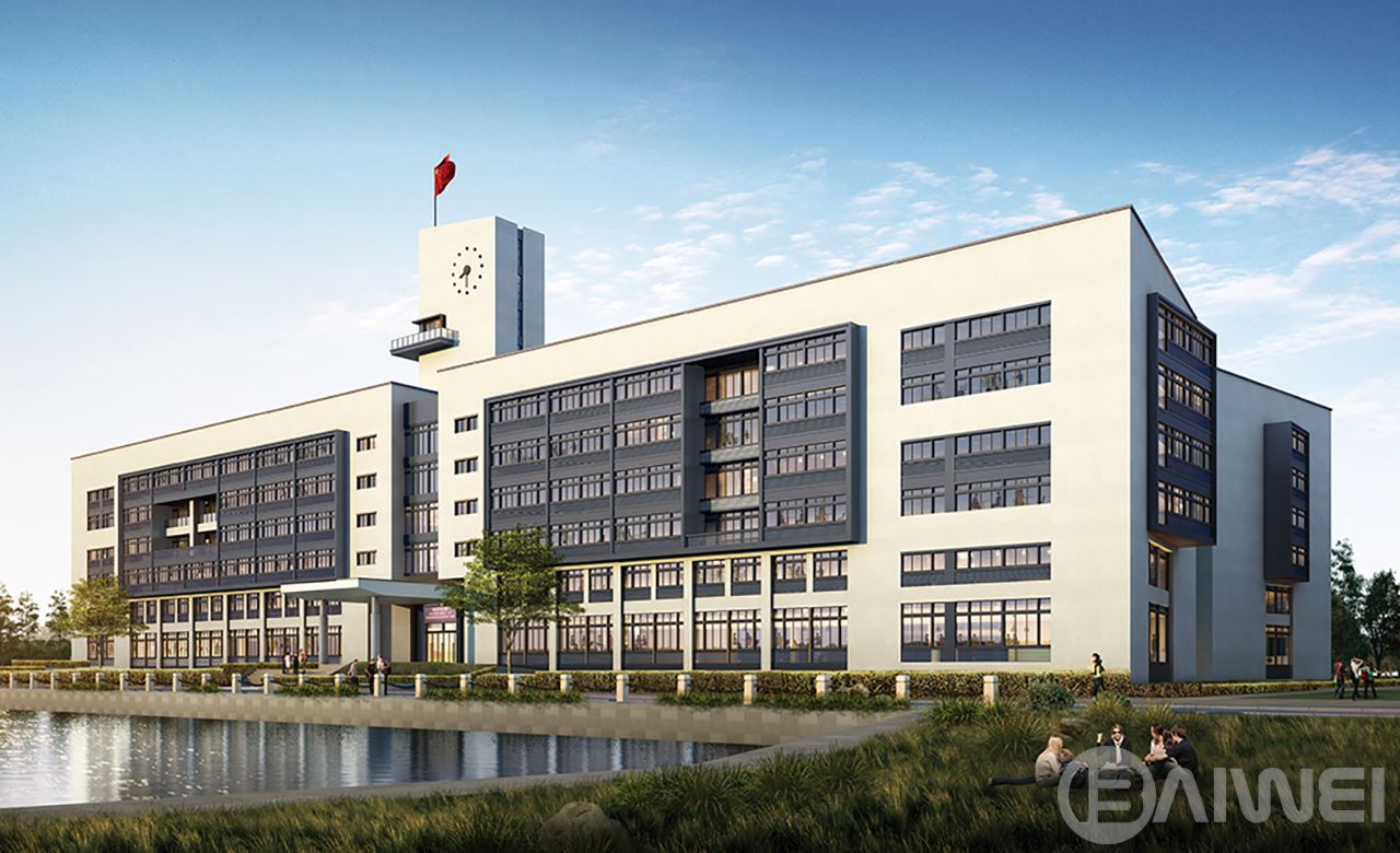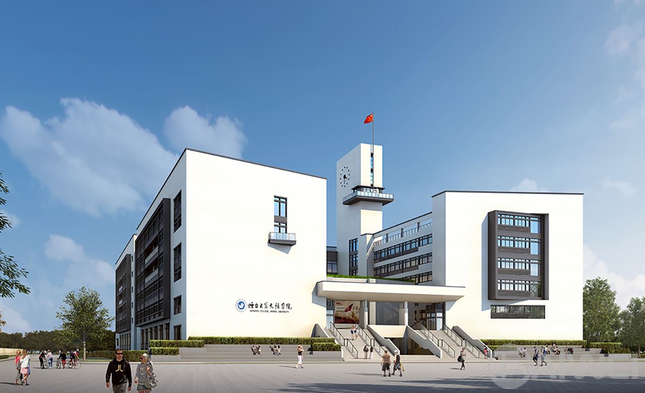 項目位于煙臺市萊山區(qū)港城東大街,包括擬新建3#教學(xué)樓與學(xué)生宿舍。建筑形體上采用保溫節(jié)能效果優(yōu)越的長方體造型,墻面規(guī)整整潔,盡量減少形體凹凸帶來的外墻面積的增加,降低主動能耗節(jié)能減排的綠色建筑。接近黃金分割比例的長邊與短邊比例,二十二層的高度視覺效果極佳。立面舒緩的多層體量強調(diào)水平線條,深色金屬質(zhì)感的凸窗與淺白色外墻產(chǎn)生強烈的視覺沖擊力,體現(xiàn)理性、沉穩(wěn),同時又不失現(xiàn)代、激情的一面。建筑中部的高聳的鐘樓,象征蒸蒸日上的精神。更好的突出了年輕人的生活狀態(tài),激發(fā)莘莘學(xué)子的學(xué)習(xí)熱情,完美的詮釋了E時代的大學(xué)校園生活。
