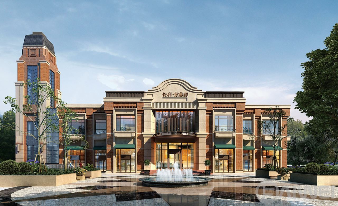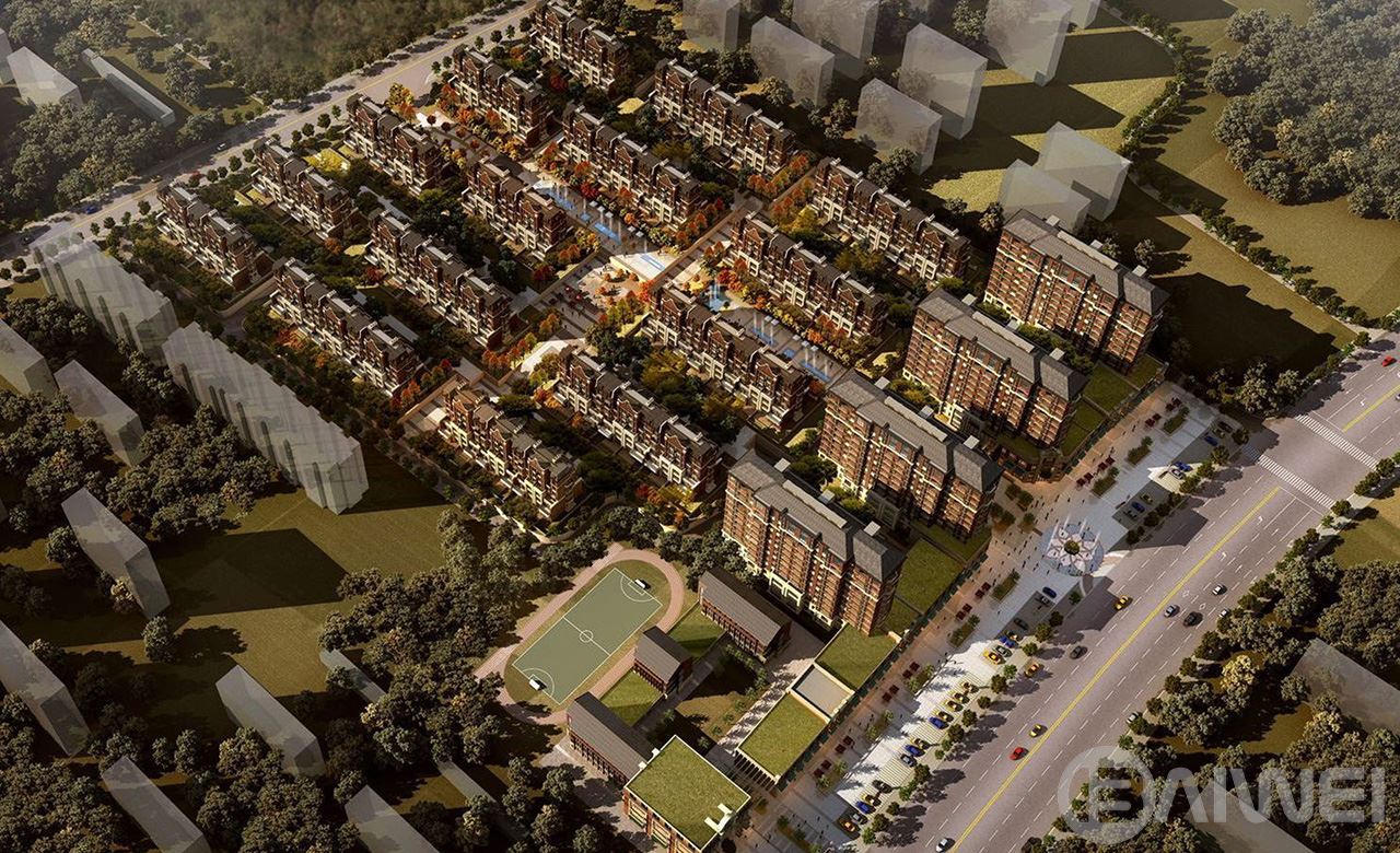 本項目住宅主要為4棟13層小高層公寓,以及15 棟5?6層多層洋房。立面整體采用美式褐石風(fēng)格,立面以褐色磚面及石材為主,真石漆勾勒門庭和建筑線條,透過深淺明暗,表現(xiàn)其豐富的歷史痕跡與渾厚的文化底蘊(yùn)。整體追求高貴、典雅、端莊,以其優(yōu)雅、唯美的姿態(tài),平和而富有內(nèi)涵的氣韻,描繪出居室主人高雅的身份。