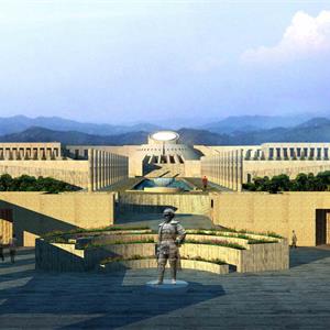本項(xiàng)目設(shè)計(jì)吸收了國(guó)內(nèi)外陵園建筑和祭祀建筑的可借鑒的因素,把設(shè)計(jì)的重點(diǎn)放在軸線,序列和節(jié)奏的變化上。主要的軸線 安排在現(xiàn)有的通向紀(jì)念碑的五百米長(zhǎng)的道路的位置上,依次展開入口廣場(chǎng)—追思大道—楊子榮廣場(chǎng)—思源之路—紀(jì)念廣場(chǎng) —紀(jì)念館4觀景臺(tái)4紀(jì)念林4烈士墓等內(nèi)容。